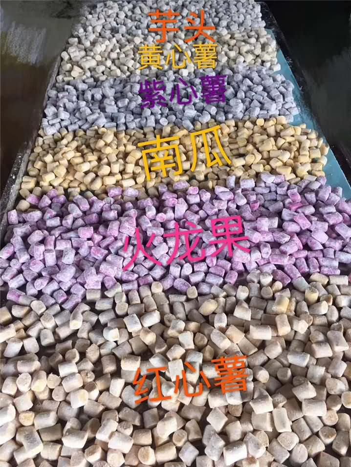 剛定購(gòu)商用大型XZ-15芋圓機(jī)客戶跟著師傅學(xué)習(xí)操作后不久,開始自己操作用芋圓機(jī)做起了芋圓,從原來的單一的紅薯芋圓發(fā)展至現(xiàn)場(chǎng)多種不同口味的芋圓,如:芋頭、黃心薯、紫心薯、南瓜、火龍果。能用來做芋圓的雜糧都拿來用芋圓機(jī)高效生產(chǎn),生產(chǎn)出來的成品外觀一致,大小相差不過1-2克客戶自己能接受,擺放好的雜糧芋圓就像一道彩虹照亮了客戶的致富之路!