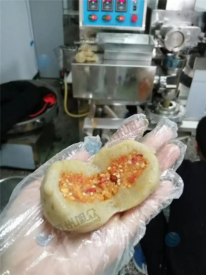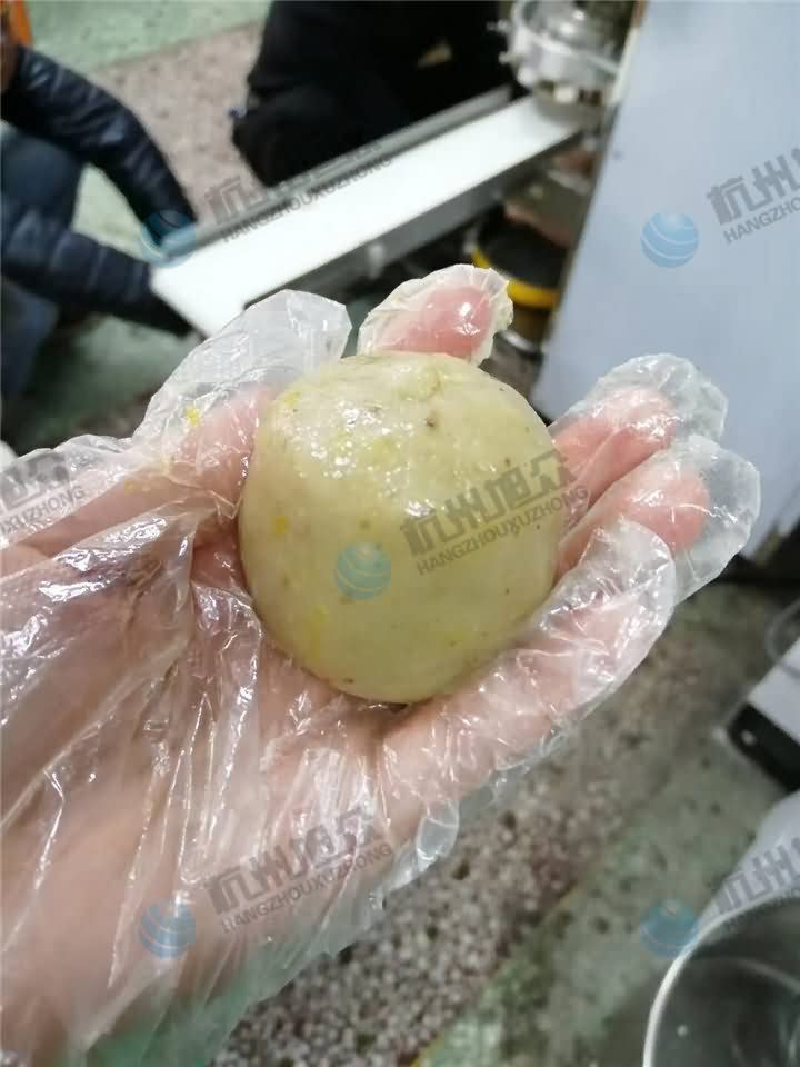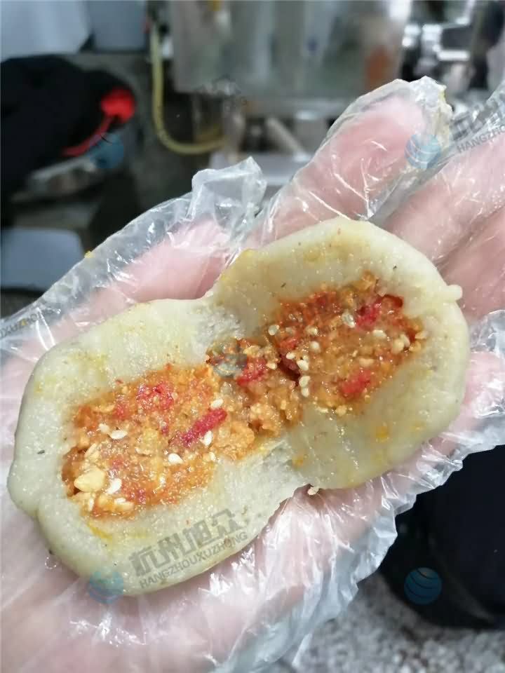 婁底特色團子美味又很養(yǎng)生,客戶帶著物料來到旭眾機械廠,根據(jù)他的物料師傅安利99包餡機來生產(chǎn)他所需要的產(chǎn)品,當看到包餡機能完好的將團子一個個大小均勻的生產(chǎn)成型,客戶當場就對包餡機心動了。