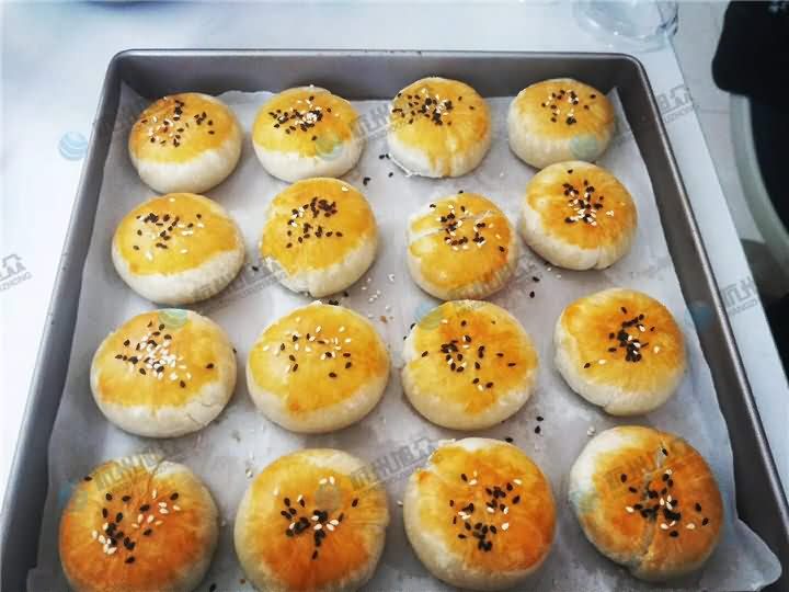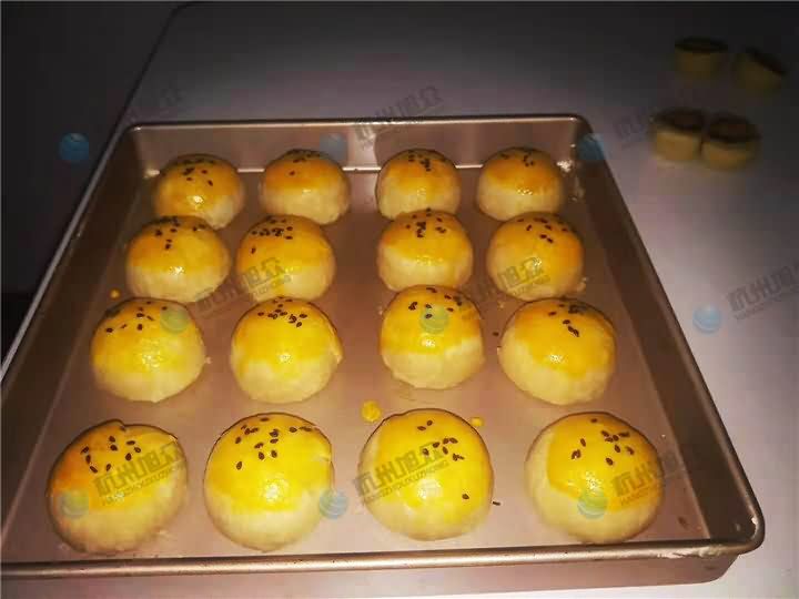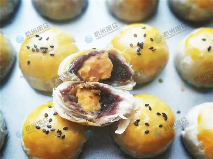 酥餅機生產(chǎn)線做的蛋黃酥效果!