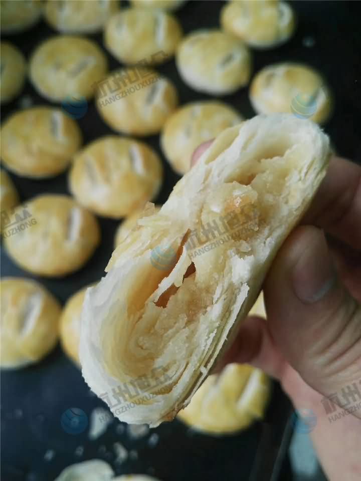 客戶預(yù)約上門考察酥餅機(jī),直觀酥餅機(jī)做老婆餅的效果: