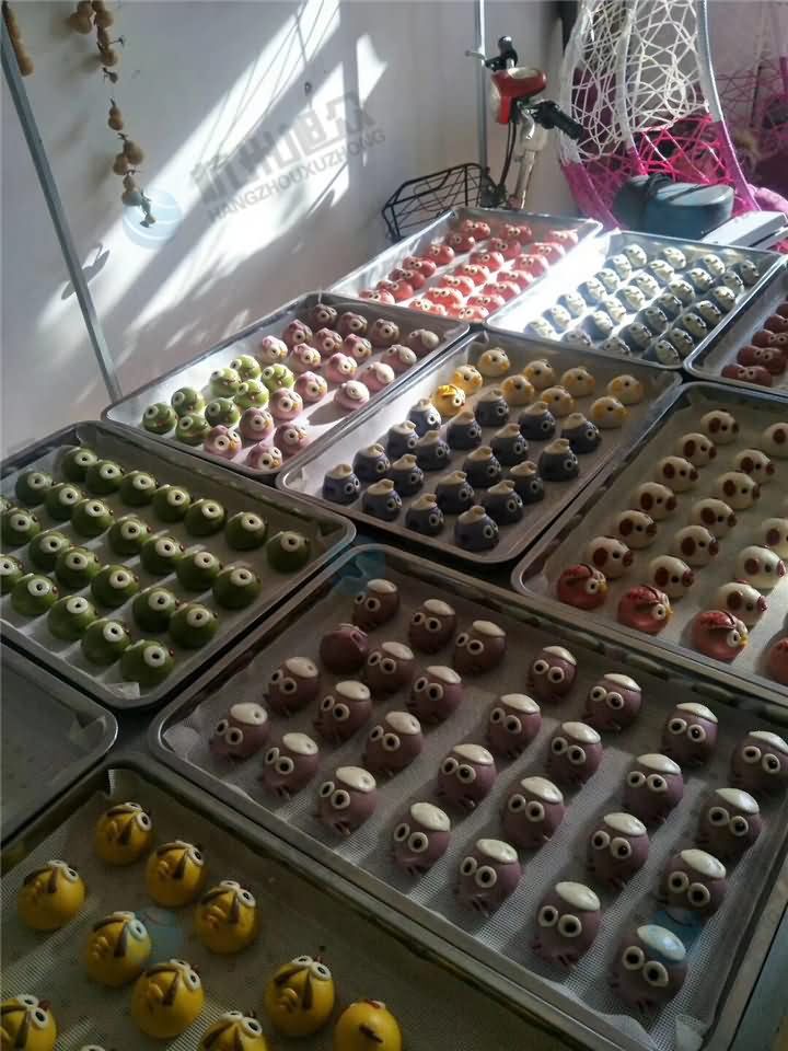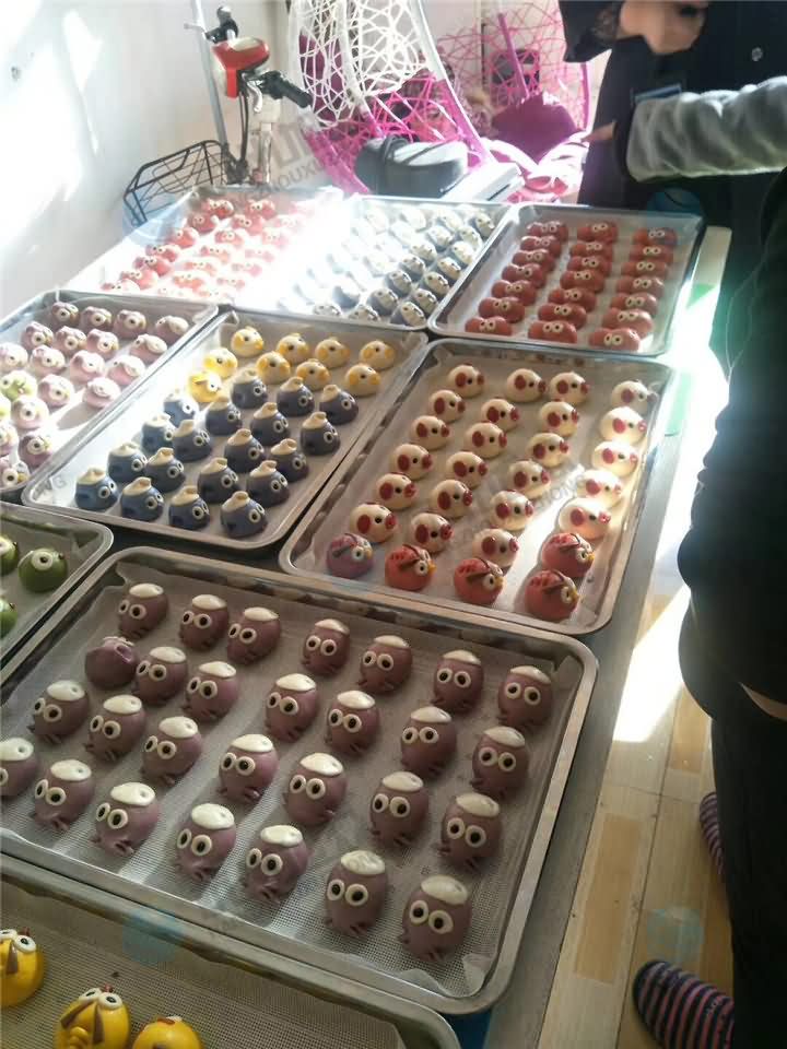 包子機(jī)自動包餡成型后,客戶再手工后期加工成卡通包,太有創(chuàng)意了!