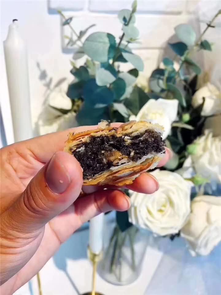 客戶用我們三段酥餅機(jī)做的蘇式月餅 椒鹽蔥香月餅 色香味俱全