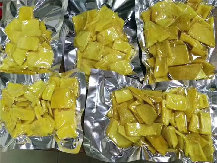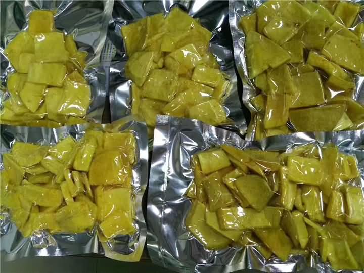 低溫真空油炸機油炸:保存了果蔬原有的形、色、香、味,并富含維生素、礦物質(zhì)、纖維等多種營養(yǎng)成分,具有低糖、低鹽、低脂、低熱等特征,炸出健康時尚食品!剛炸好的芒果干效果: