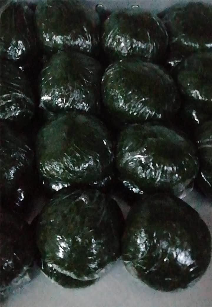客戶用XZ-88多功能包餡機生產的純天然艾葉粑,剛做出的是翠綠色,蒸熟是深綠色,放冷的時候是墨綠色。這才是真正純天然艾葉粑粑。顏色特別鮮艷的可能是放青草做的哦!歡迎致電400-885-2117咨詢包餡機及艾葉粑工藝!