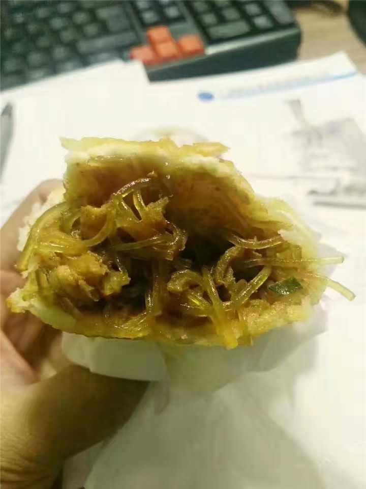 客戶在家自己拌好的羅博粉絲豬肉餡帶來到旭眾機械廠,因為他來之前就已經(jīng)致電400-885-2117咨詢客服了解包子機基本情況后,再帶五斤左右的餡料想要現(xiàn)場直觀87包子機做蘿卜粉絲豬肉包子,當然效果也是讓客戶非常滿意,直接現(xiàn)場成交定購87包子機一臺: