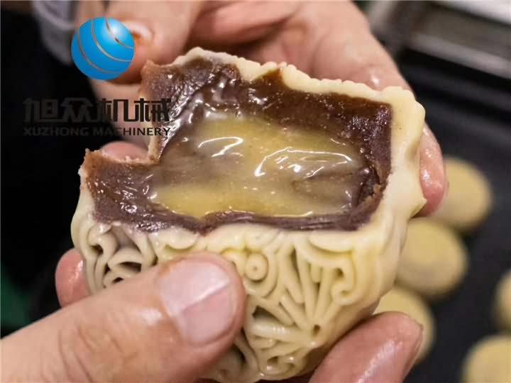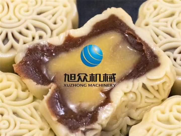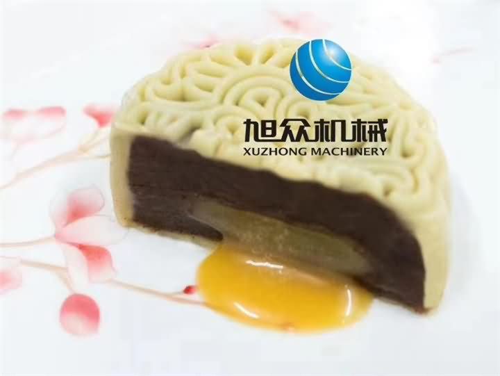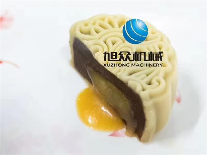 旭眾新款SZ-68S餡中餡自動(dòng)包餡月餅機(jī)流水線生產(chǎn)流心月餅效果:
