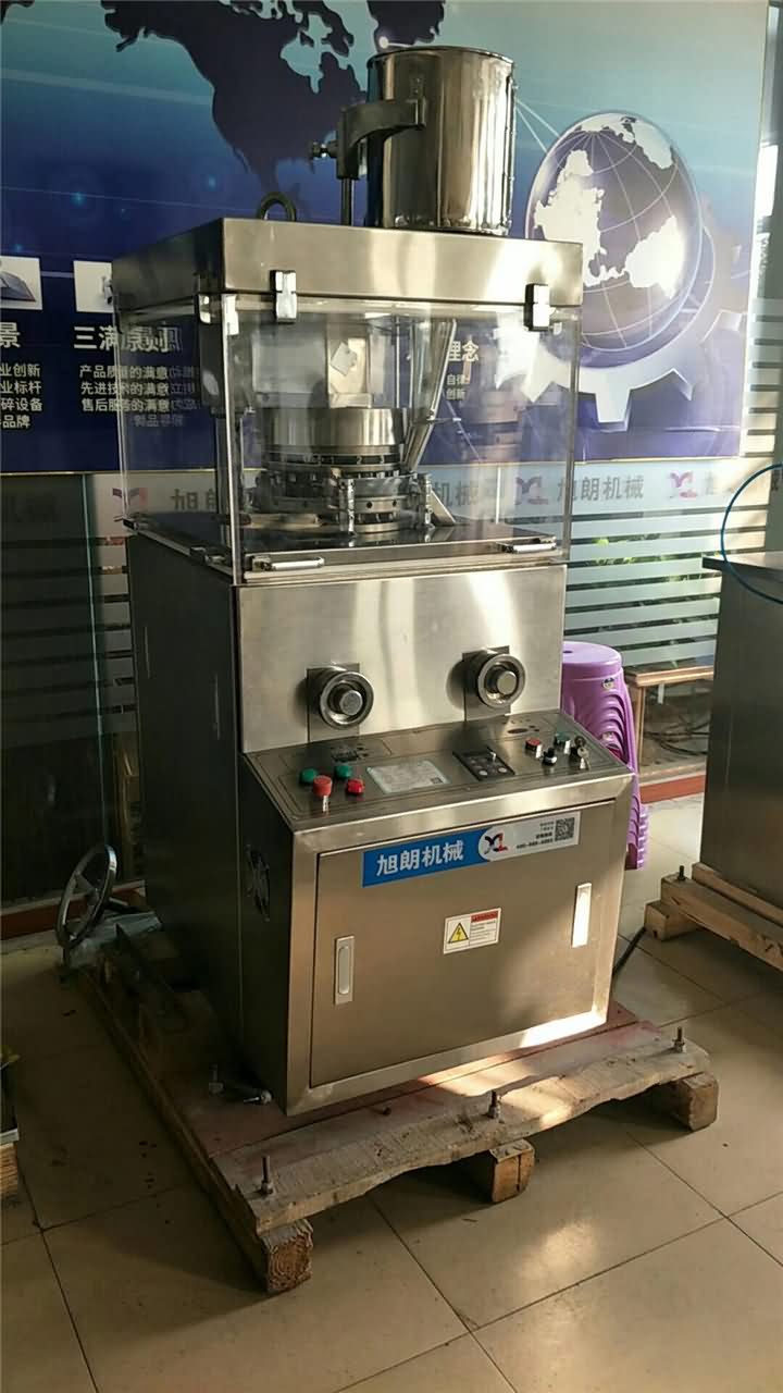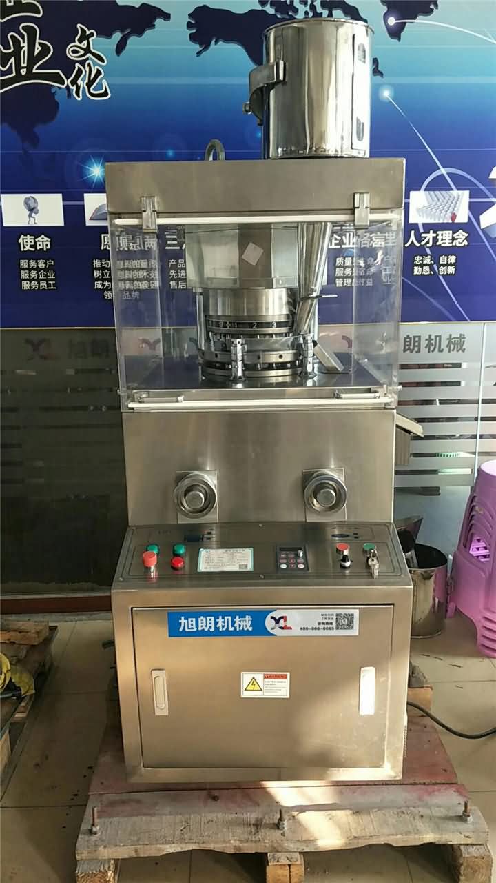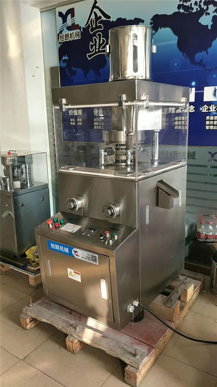 旭眾集團旗下旭朗品牌專門生產(chǎn)粉碎機,制藥機,壓片機等設(shè)備,目前熱銷款不銹鋼旋轉(zhuǎn)式壓片機以將各種顆粒狀原料壓制成圓形片劑,適合于小批量生產(chǎn)。其特點是轉(zhuǎn)盤上可裝15-19付沖模,旋轉(zhuǎn)一周即可壓制15-19片。轉(zhuǎn)盤速度、物料的充填深度、壓片厚度均可調(diào)節(jié)??山邮芏ㄖ聘鞣N形狀片劑的模具!
