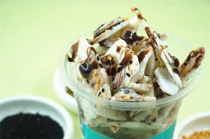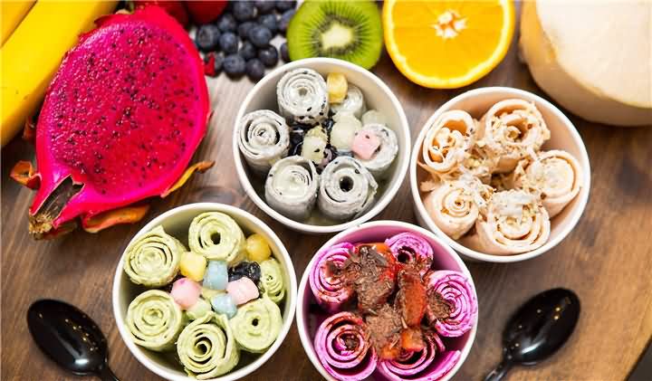 熱鬧的街市,一群放學的孩子圍著一個炒冰機,排隊買炒酸奶,各種味道的奶片再撒上一點彩色糖果,這個色彩與味蕾的誘惑誰能抵擋得了