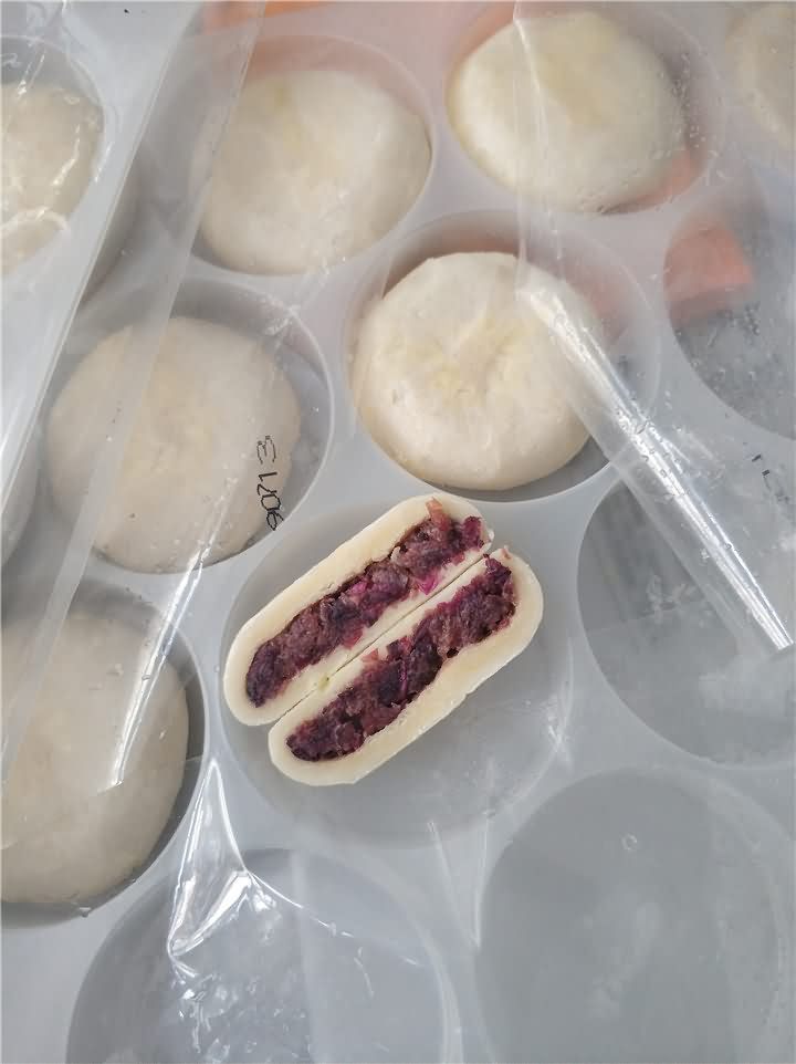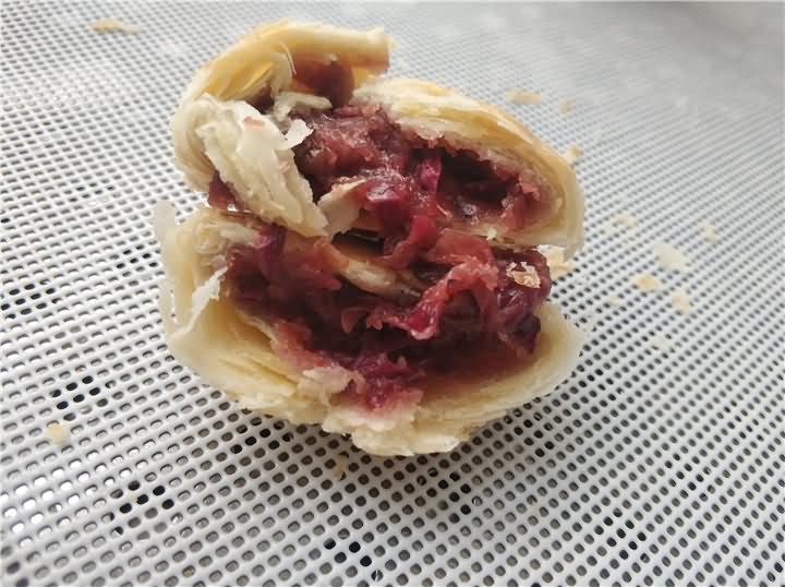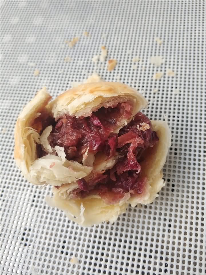 剛出爐的鮮花餅由旭眾酥餅機(jī)生產(chǎn)