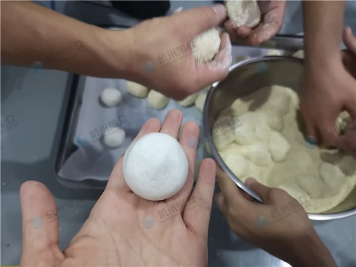 包餡機(jī)做的麻球就是好吃,就是缺一臺裹粉機(jī)器