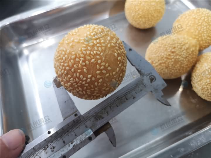 多功能包餡機(jī)做麻球咯!就是一開始做出來的團(tuán)子形狀,如要裹芝麻則需要人工手工裹,或者可以配一臺自動裹粉機(jī)器,專門裹粉、裹芝麻、紅米、紫米等等,先來看看包餡機(jī)做的麻球效果: