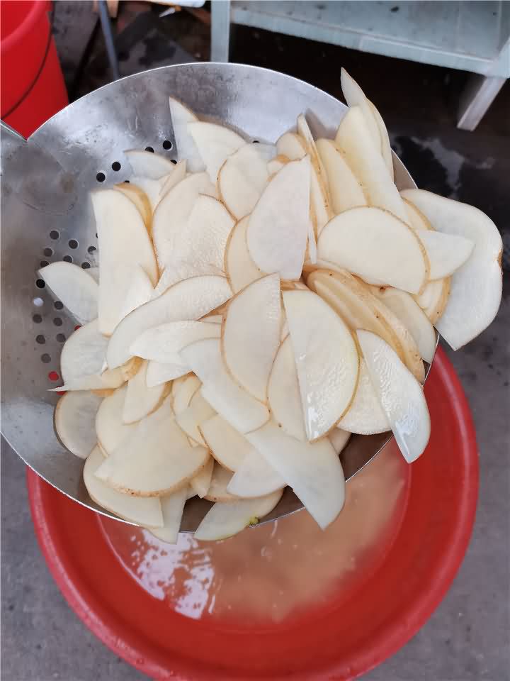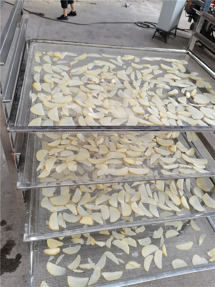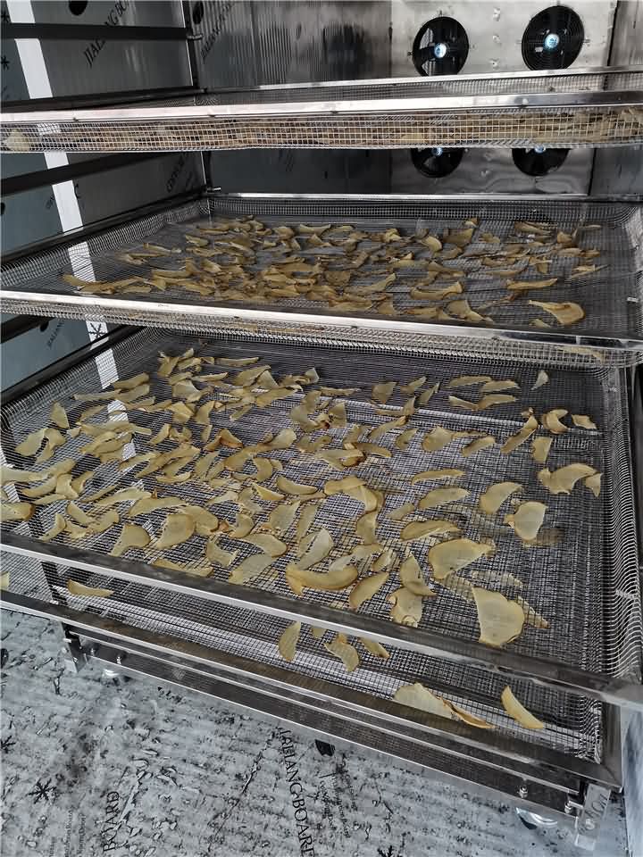 土豆烘干步驟:為了能加速烘干時(shí)間,可將土豆切成片狀,水煮后撈出平鋪放在架子上,不要各種重疊擺放,這樣放入烘干房內(nèi)可烘干均勻。那么我們來看看土豆片烘干前后的對比:
