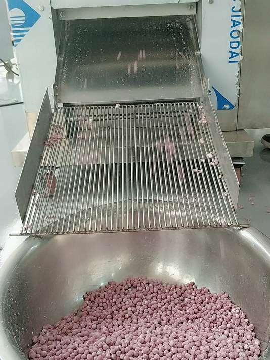 合成的面團可通過旭眾無餡湯圓機分割搓圓成一個個小丸子,一小時可生產(chǎn)0~120kg,規(guī)格6-22mm可定制(注:一臺機器只有一種規(guī)格,所以一定要確定好自己要的規(guī)格)